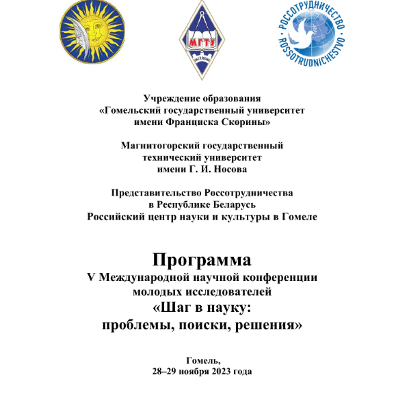 Участие научно-волонтёрской группы в V Международной научной конференции молодых исследователей «Шаг в науку: проблемы, поиски, решения» Гомель, 28–29 ноября 2023 года. Рыбаков Дмитрий Геннадьевич, сетевой администратор, Исроилова Мукаддас Шониёр кизи, студент (г. Уфа) Языковой выбор индивида как фактор, показатель и условие саморазвития личности Сабирова Сагдиана Шоназар кизи, студент (г. Уфа) Вопросы эффективности культурно-языковой адаптации детей-мигрантов